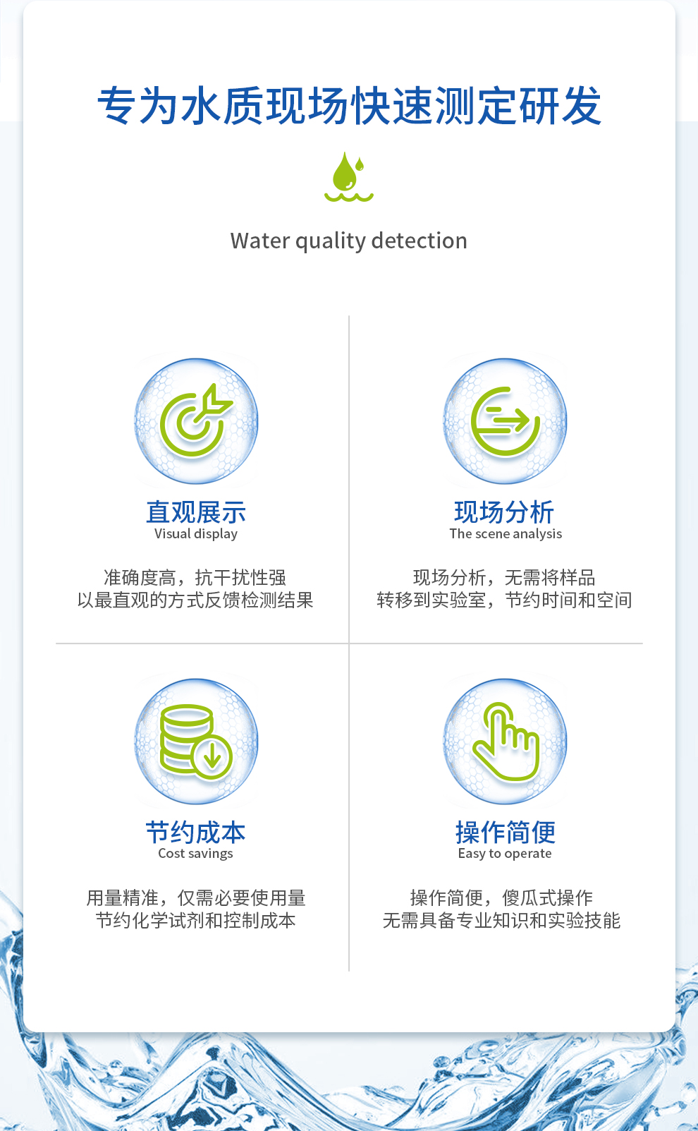 【產(chǎn)品用途】用于水中堿度\總堿度快速檢測(cè)飲用水、鍋爐水、冷卻水、地表/地下水、水產(chǎn)養(yǎng)殖、生物發(fā)酵、建筑材料等。