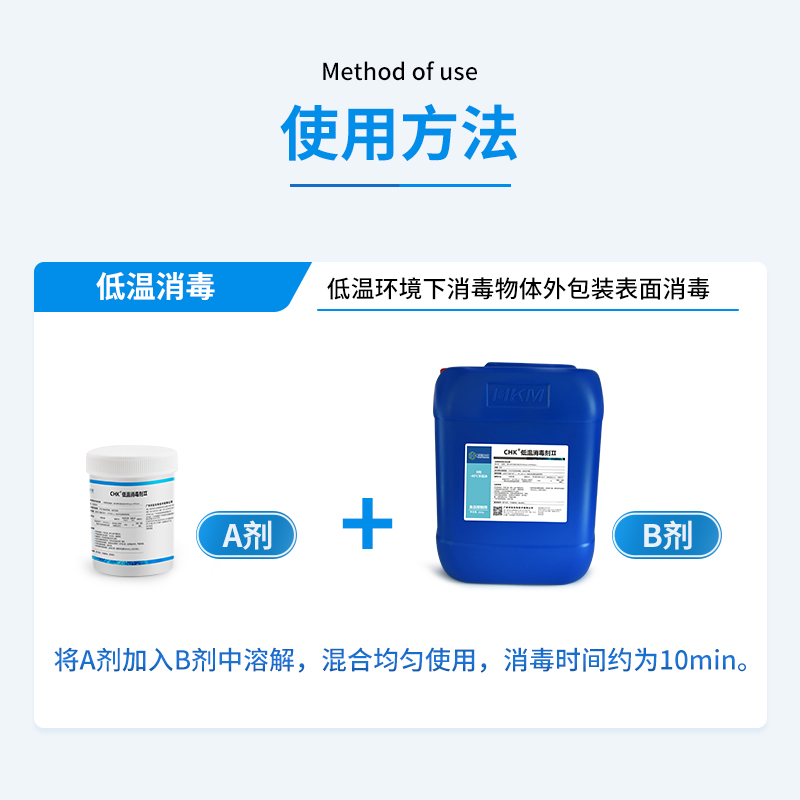 【產品介紹】本品是以二氯異氰尿酸鈉為主要有效成分的消毒劑,混合液有效氯含量為5000mg/L士500mg/L,適用于低溫環(huán)境下(-40C及以上)物品外包裝表面的消毒。