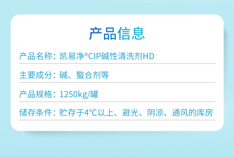 【產(chǎn)品名稱】凱易凈®CIP堿性清洗劑HD