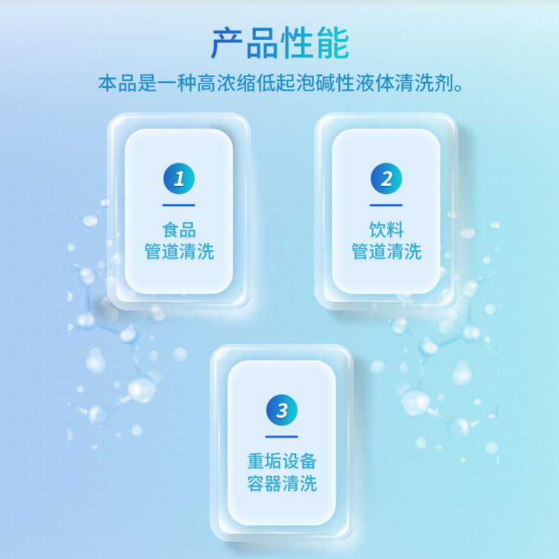 1、清洗效果好:CIP堿性清洗劑為濃縮液體堿性清洗劑,具有合理的平衡配比、卓越的耐硬水性能,對脂肪、蛋白質(zhì)等熱變性復雜污垢的分解去除力強。