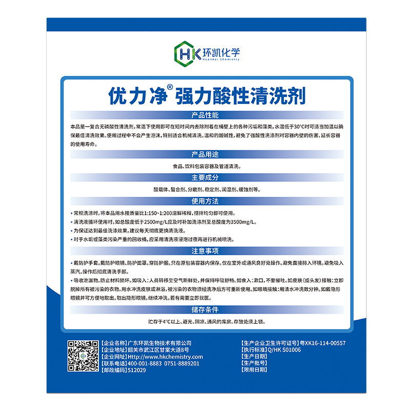 【產(chǎn)品名稱】優(yōu)力凈®強力酸性清洗劑 袋裝