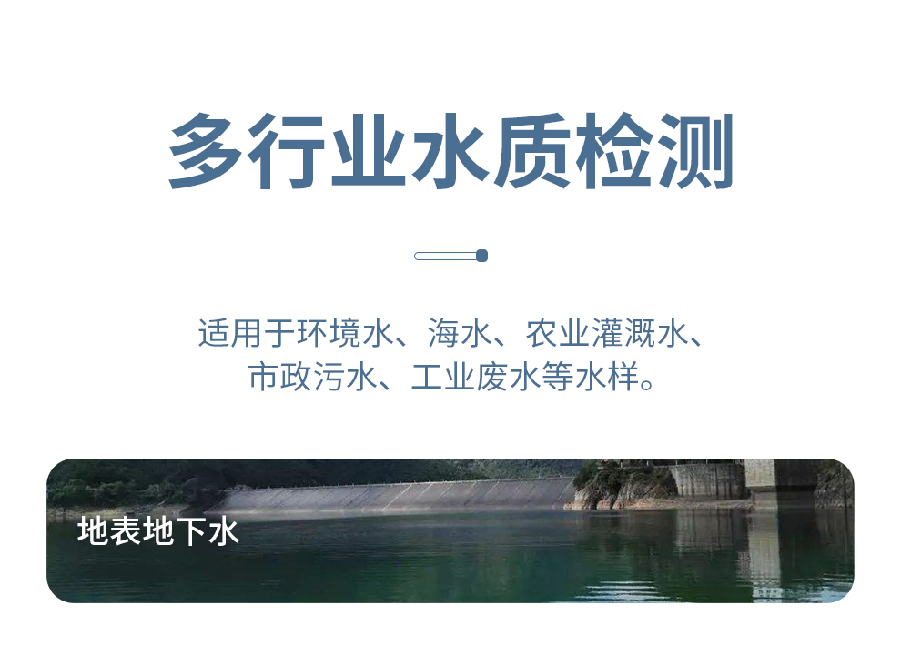 【應(yīng)用范圍】用于環(huán)境水、海水、農(nóng)業(yè)灌溉水、市政污水、工業(yè)廢水等水樣