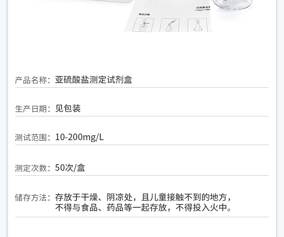 【產品名稱】亞硫酸鹽測定試劑盒(10-200mg/L)